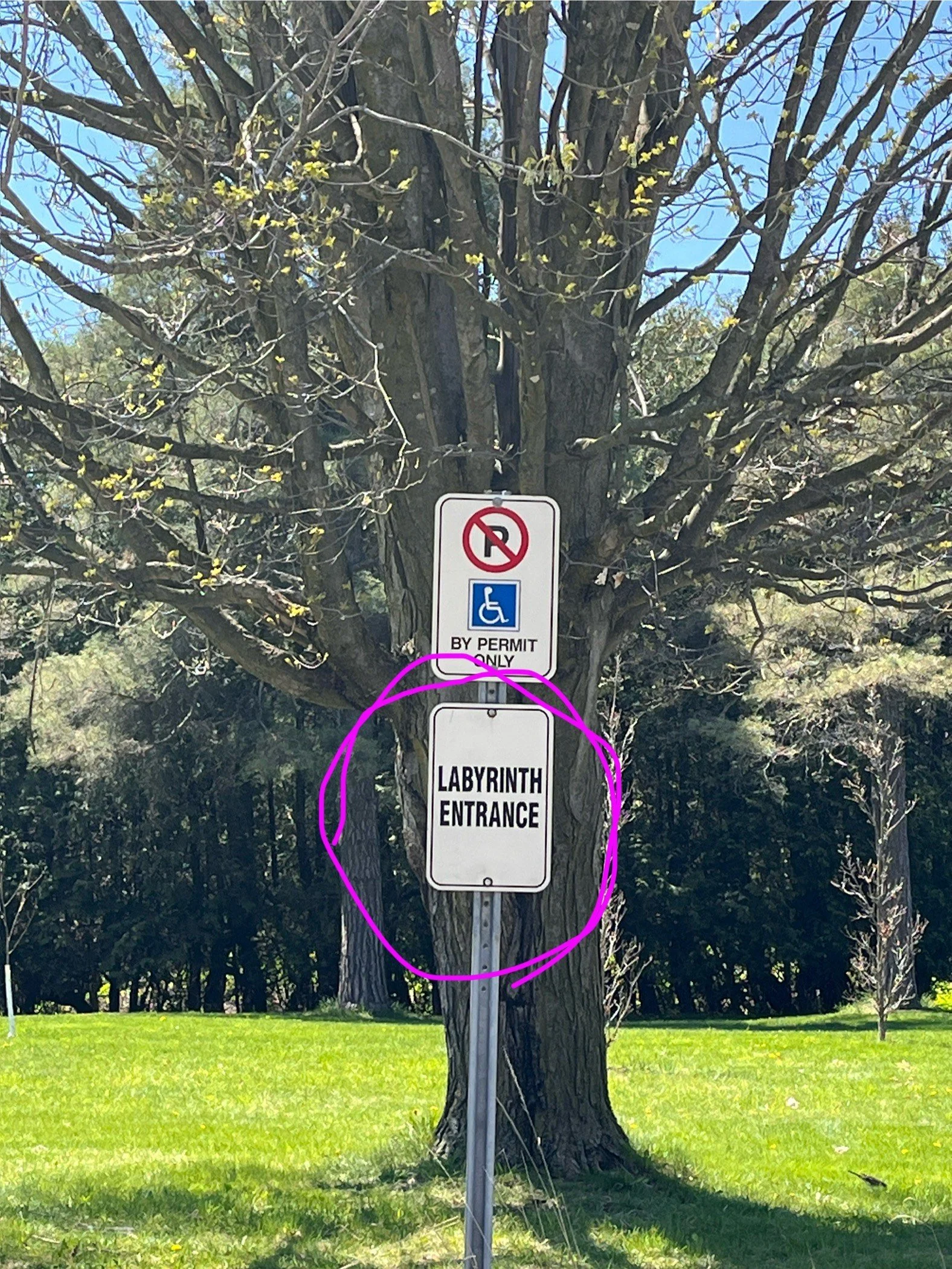 The address is 5420 Hwy 6 Guelph. We will meet at the Labyrinth. Follow signs for the West Entrance/Loyola house (pictured below). The labyrinth will be on your left hand side (see the star on the third picture below) with parking in front of it, and a large garden in the field on your right.